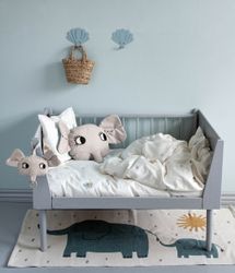 Vårt fokus ligger på att skapa positiva och stimulerande miljöer för kreativ lek. Roommate-universumet är fyllt av vackra färgharmonier och glada berättelser. Våra designprodukter är charmiga små rumskamrater – redo att flytta in.