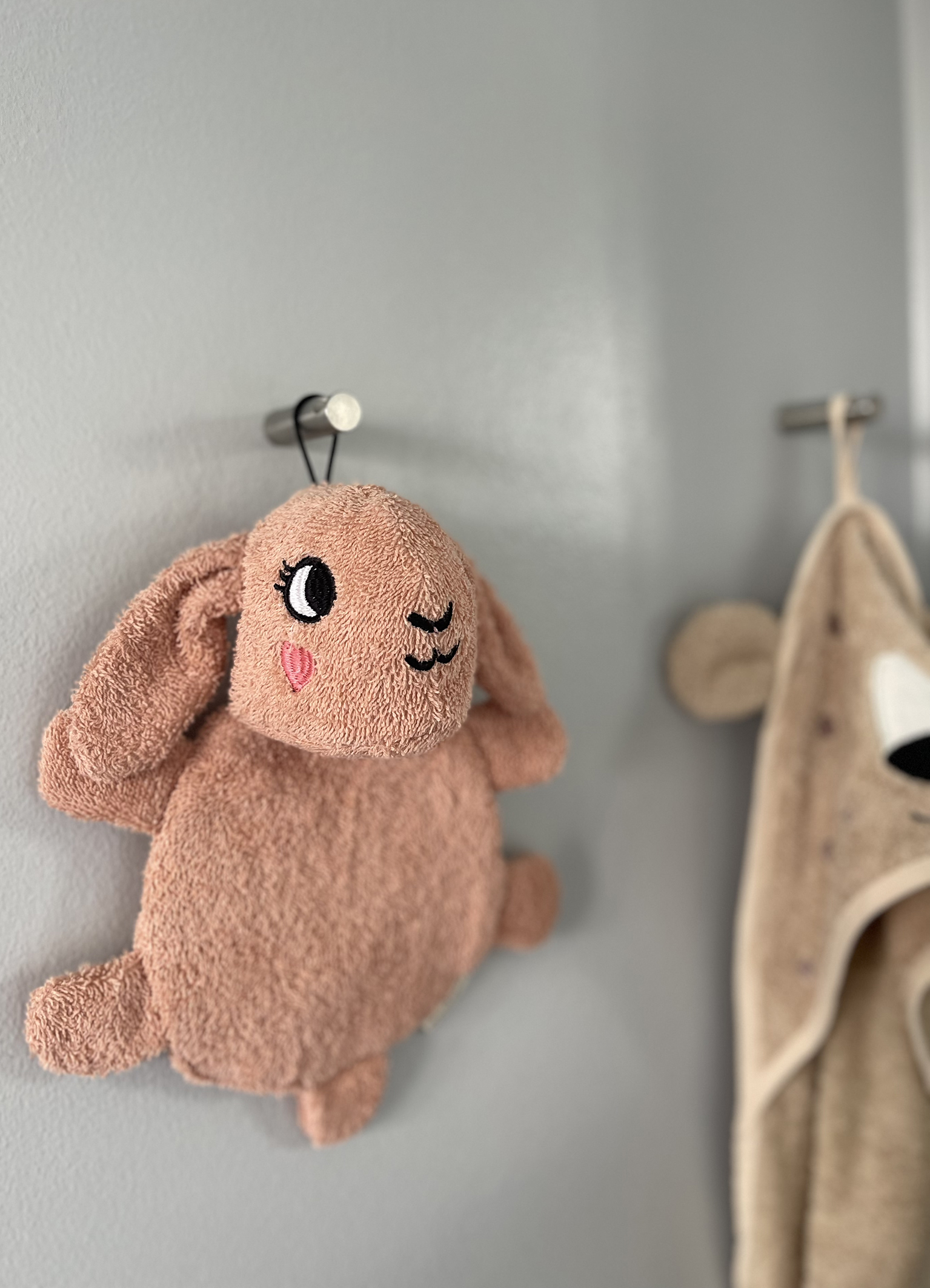 BUNNY Bathtub Toy / Wash Glove Varumärke Du måste vara inloggad för att köpa Lägg till mina favoriter Ta bort från favoriter En söt liten badleksak i form av en liten kanin som flyter på vattnet och är perfekt att ha i badkaret. Leksaken är sydd i ekologisk bomullsfrotté med broderad design och kan dessutom användas som en rolig tvättlapp - alltid redo att göra det extra roligt att tvätta sig. Tillverkad av 100% ekologisk bomull, fylld med foam och polyesterfiber. Storlek: ca 23 x 17 cm. Artikelnr: RM1006023 Standardlager: Kommande artikel, kan beställas Minsta antal att beställa: 1 st. Priset avser per styck.