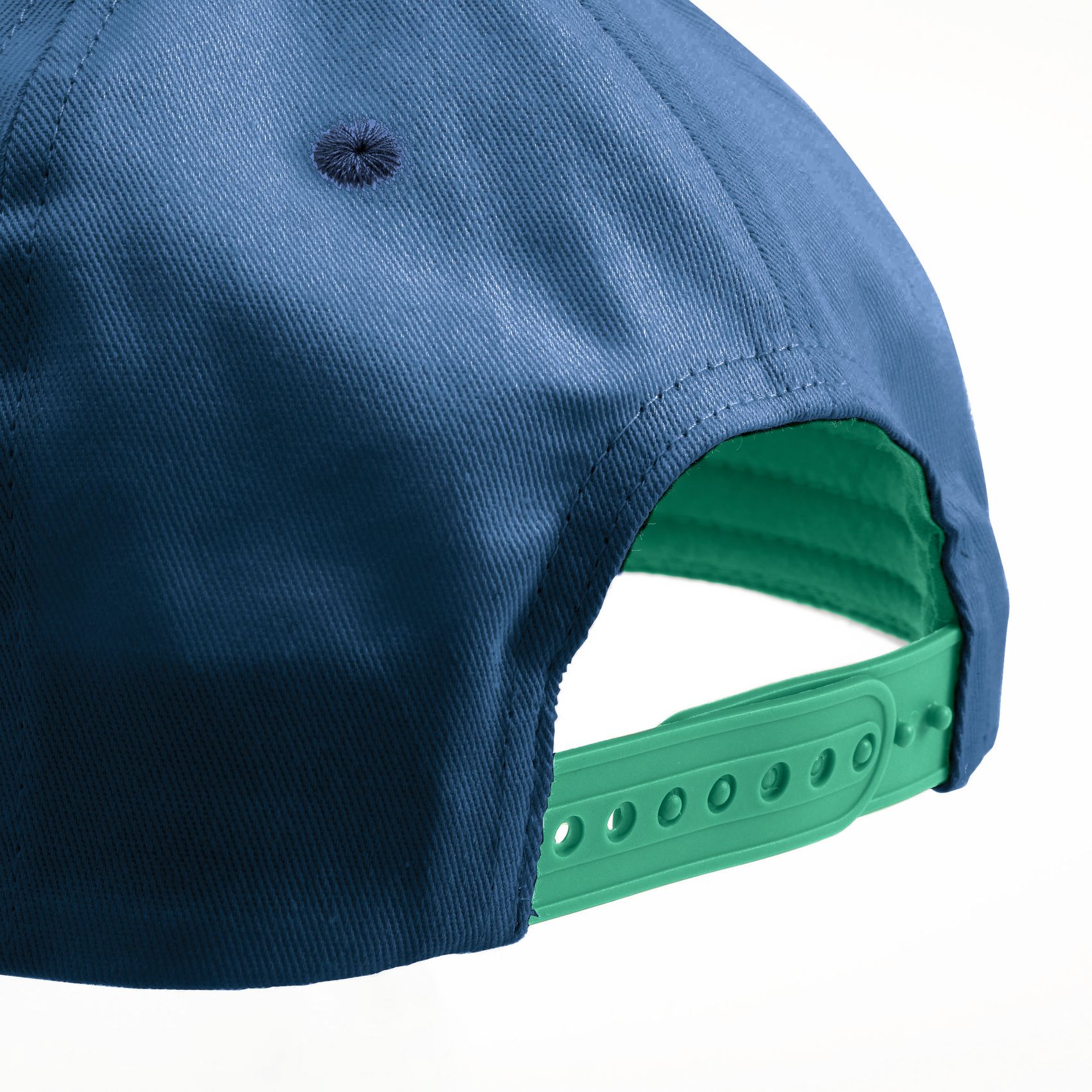 Stil möter funktion i denna barnkeps av bomull i marinblått och grönt, vars justerbara storlek säkerställer en bra passform för alla tillfällen och äventyr.