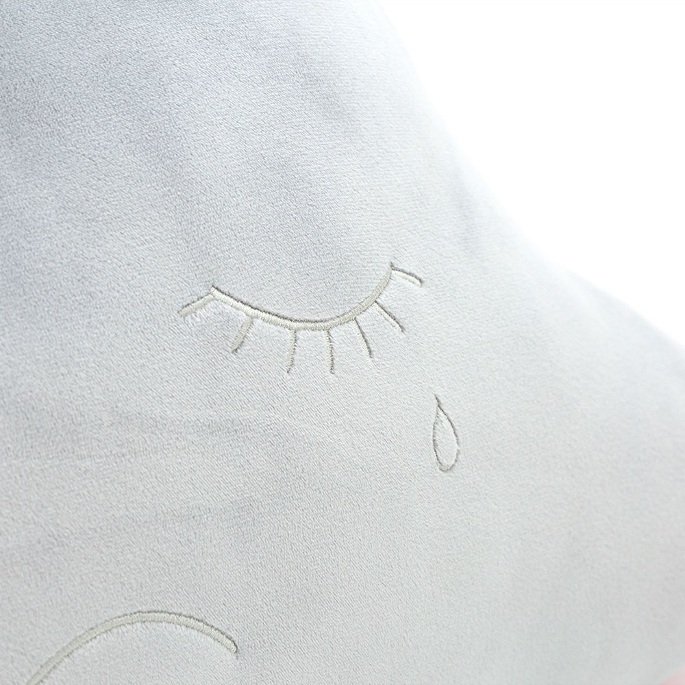 Ett gosigt moln där ena sidan är grå och ledsen medan den andra är glad och rosaskimrande, med händer i sidorna som verkar vilja krama dig tillbaka och små ben som du kan leka med. Ibland kan det kännas bra att dela även ledsna känslor, men efter ett tag är det bara att vända på kudden och inspireras till att se mer positivt på situationen. Denna otroliga leksak eller kudde kommer du snabbt att falla för och sedan inte vilja släppa. Perfekt för både lek och mys passar den dessutom lika bra för små som för stora. Tillverkad med omsorg i ett otroligt mjukt stretchtyg av 100% polyester och fylld med en speciell polyester fiber som ger maximal mjukhet. För att hålla den fräsch och redo för kramar kan den handtvättas och hängtorkas vid behov.