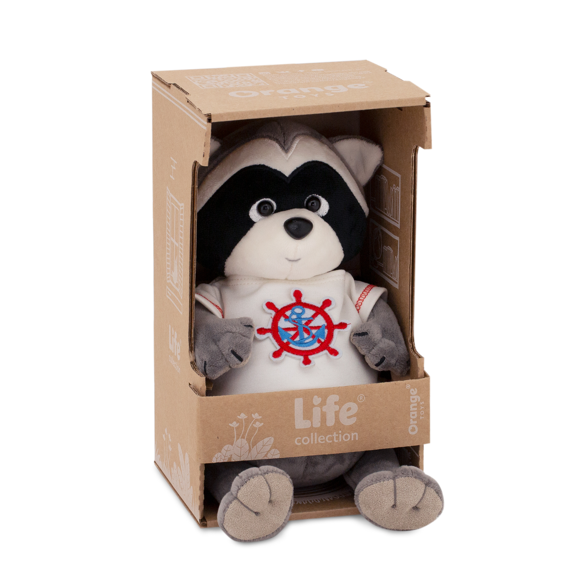 Denna gosiga och äventyrliga tvättbjörn har på sig sin favorittröja, vars broderade motiv med ett ankare och en skeppsratt förmedlar den storslagna känslan av att färdas över havet. Med sina söta tassar, karakteristiska ansiktsmask och sin fluffiga svans med mörka ringar är denna lilla kamrat både bedårande och intelligent nog att charma sig in nästan vart som helst, men trivs lika bra ute i skogen eller på stranden där det finns så mycket att leka med, njuta av och undersöka. Ett gulligt djur med tillbehör som lyfter fram dess karaktär, personlighet och historia. Mjukdjuret kommer förpackat i en presentlåda som sedan kan förvandlas till ett litet hus för den och dessutom kan färgläggas som du vill. Tillverkad av 100% polyester och kan handtvättas vid behov.