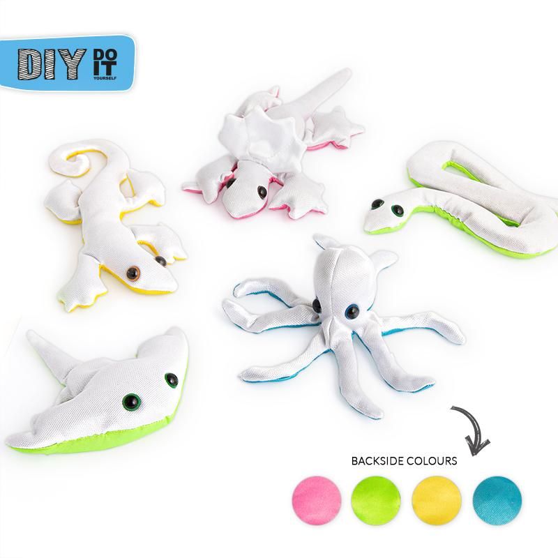 En snygg display som innehåller 18 fina små djur stoppade med sand och med härligt skimrande ovansida att färglägga som du vill. Dessa elegant skimrande små följeslagare är inte bara coola och extremt hållbara, nu erbjuder de också en möjlighet att vara kreativ och ge dem din alldeles egna design! Perfekta att samla på, roliga att leka med eller byta med kompisar. Dessa små sandfyllda figurer kommer i form av 6 olika djur med glatt färgade undersidor i antingen rosa, ljusgrönt, gult eller ljusblått och glänsande ovansidor i vitt. Du kan färglägga dem vanliga fineliners, märkpennor eller textilpennor, så med lite fantasi och kreativitet kan du skapa ett verkligt unikt föremål som skänker glädje under lång tid framöver!