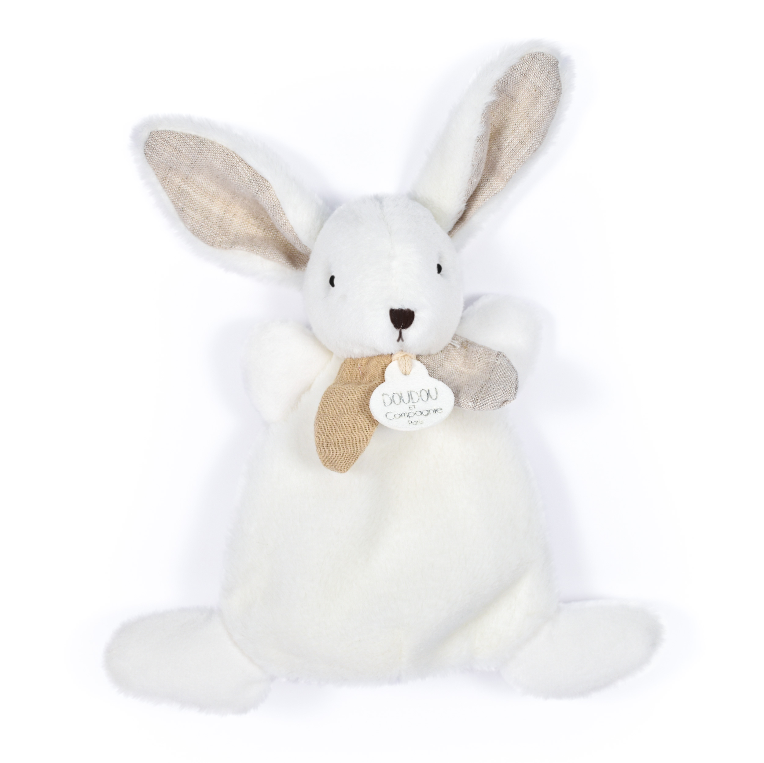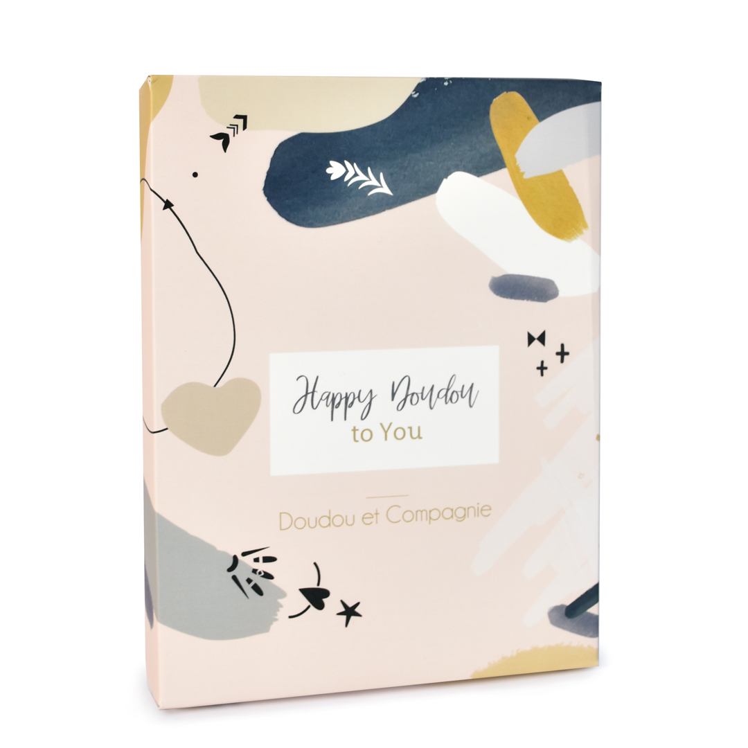 En elegant och härligt gosig snuttefilt i form av en platt vit kanin med dekorationer i neutrala toner och i ett lite mindre format som passar de minsta. Dess gosiga öron smyckade med beige accenter, tillsammans med de mjukt stoppade fötterna, den bedårande, ljust linfärgade svanstofsen, den härliga gräddvita plyschen och mjuka dekorationer i toner av sand, jord och naturvitt, utstrålar tillsammans en känsla av trygghet och glädje samtidigt som den ger bebisen olika strukturer att utforska. Snuttefilten kommer i en elegant designad matchande presentask, vars grafiska mönster förenar modernitet med en känsla av lyx. Perfekt som gåva till en nyfödd, och presentasken är så vacker och hållbar att den kan återanvändas för att förvara småsaker eller minnen. Snuttefilten är tillverkad av i huvudsak polyester, med dekor av muslintyg i 100% bomull, och bör tvättas i en tvättpåse på 30°C skontvätt (fintvätt) för att sedan hängtorkas eller torktumlas på låg temperatur för att behålla sin mjukhet. Det är en god idé att ha en dubblett i reserv för att kunna tvätta denna älskade kanin regelbundet.