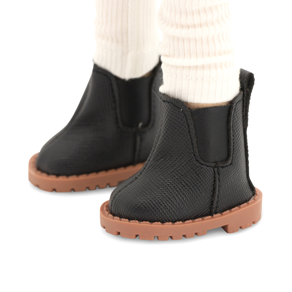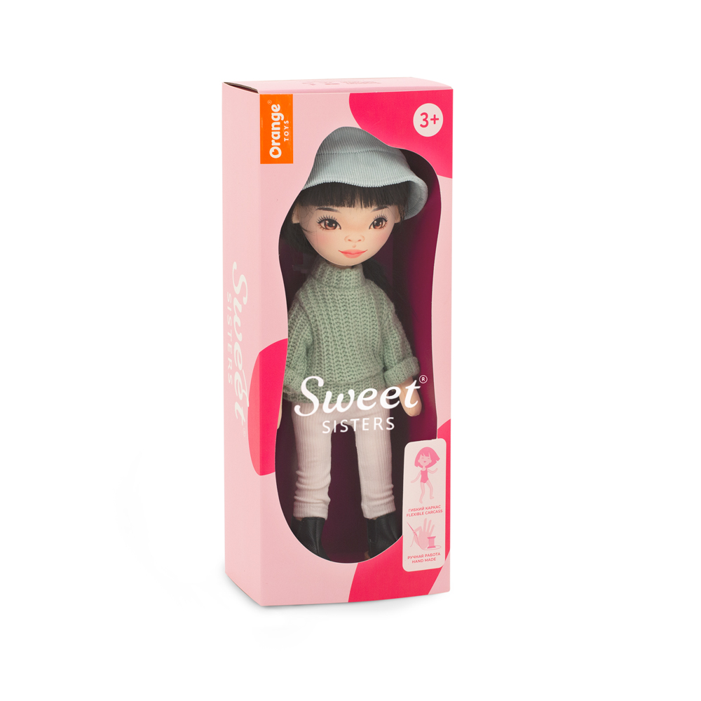En elegant handgjord docka med asiatiska drag som har svart axellångt hår med lugg och vackra bruna ögon som lyser upp ett ansikte fullt av karaktär. Det glänsande håret är av premium kvalitet som kan formas om med hjälp av till exempel locktång, så det är bara att leka stylist och experimentera med olika frisyrer och stilar! Dockan har dessutom en flexibel stomme i kroppen som gör att den kan stå upp och att du kan få den att posera nästan hur som helst. Hon är klädd i en snygg stickad tröja, vita ribbstickade leggings, en blekgrön solhatt i manchester och svarta stövletter, tillsammans med en glänsande svart handväska med dekorsömmar. Både kläderna och skorna går att ta av och passar alla dockor i serien. Dockans ansikte är konstnärligt skapat och utfört med digitala tryck på tyget för att säkerställa lång hållbarhet samt ge karaktären uttrycksfulla och förtjusande ansiktsdrag. Både dockan och kläderna är tillverkade av högkvalitativa tyger i 100% polyester och dockan är stoppad med polyester fiber samt polyetenpellets. Både dockan och kläderna kan handtvättas och hängtorkas för att hålla dem fräscha.