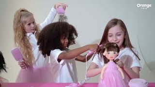 En elegant handgjord docka med mörk hy, långt svart afro hår och vackra bruna ögon som lyser upp ett ansikte fullt av karaktär. Det fluffiga håret är av premium kvalitet som kan formas om med hjälp av till exempel locktång, så det är bara att leka stylist och experimentera med olika frisyrer och stilar! Dockan har dessutom en flexibel stomme i kroppen som gör att den kan stå upp och att du kan få den att posera nästan hur som helst. Hon är klädd i en snygg rosa träningsoverall där tröjan har en ficka på magen, tillsammans med en tunn vit mössa samt vita skor och bär en glänsande blågrå magväska. Både kläderna och skorna går att ta av och passar alla dockor i serien. Dockans ansikte är konstnärligt skapat och utfört med digitala tryck på tyget för att säkerställa lång hållbarhet samt ge karaktären uttrycksfulla och förtjusande ansiktsdrag. Både dockan och kläderna är tillverkade av högkvalitativa tyger i 100% polyester och dockan är stoppad med polyester fiber samt polyetenpellets. Både dockan och kläderna kan handtvättas och hängtorkas för att hålla dem fräscha.